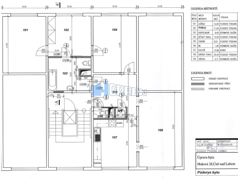 Nabízíme k prodeji velký družstevní byt 95 m2 (sloučení 2 bytů) umístěného v 6. patře panelového domu v ulici Maková, v lokalitě Severní Terasa. Byt je možné převést do OV. Jednotka je orientována na obě strany bytového domu tj. Z-V, s výhledem do okolní krajiny a do vzrostlé zeleně mezi bytovými domy. Prostorná kuchyň, s linkou a vestavěnými spotřebiči, umožňuje i umístění jídelního stolu. Ve středu bytu je situována velká koupelna se závěsným WC, rohovou vanou a sprchovým koutem, dále zde vyniká koupelnová galerie a skříňka s dvojumyvadlem. V bytě je také ještě samostatná toaleta. V bytové jednotce jsou také instalovány vestavěné skříně. Podlahy pokrývá dlažba a plovoucí lamino. K užívání bytu náleží i lodžie umístěná na mezipatře a sklep. Velká Terasa je oblíbené místo k bydlení v Ústí nad Labem. Nedaleko se nachází centrální park Severní Terasa s velkým množstvím venkovních prvků pro pasivní i aktivní odpočinek. Okolní příroda je téměř na dosah ruky, např. Erbenova vyhlídka umožňuje výhledy do širokého okolí. Veškerá občanská vybavenost je v blízkosti domu. Prohlídky po domluvě.
