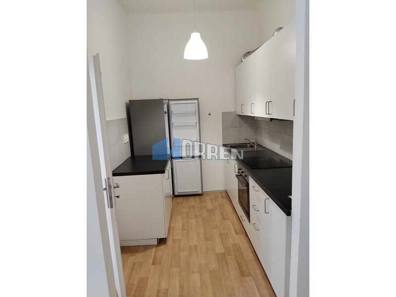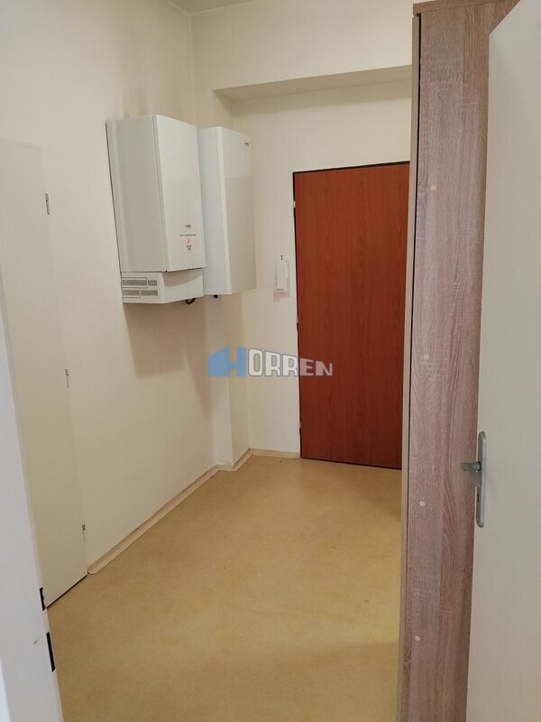 varnou deskou a ledničkou s mrazákem. Jinak je byt nezařízený. Na podlaze