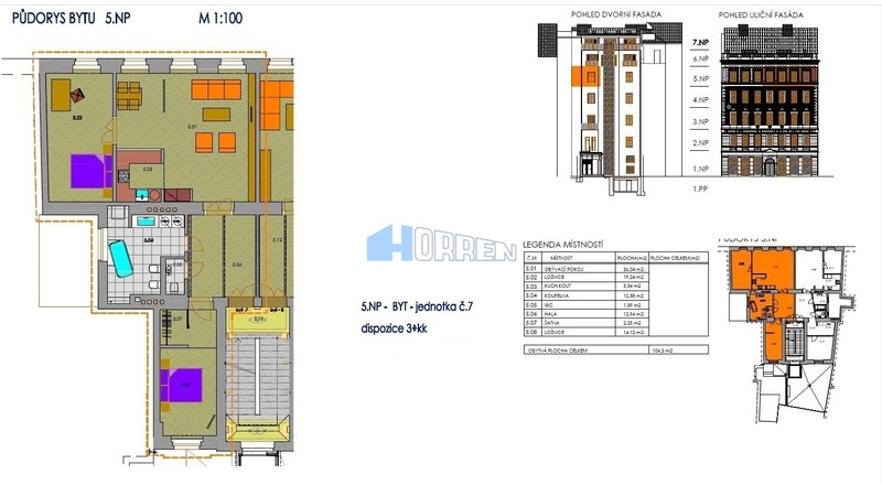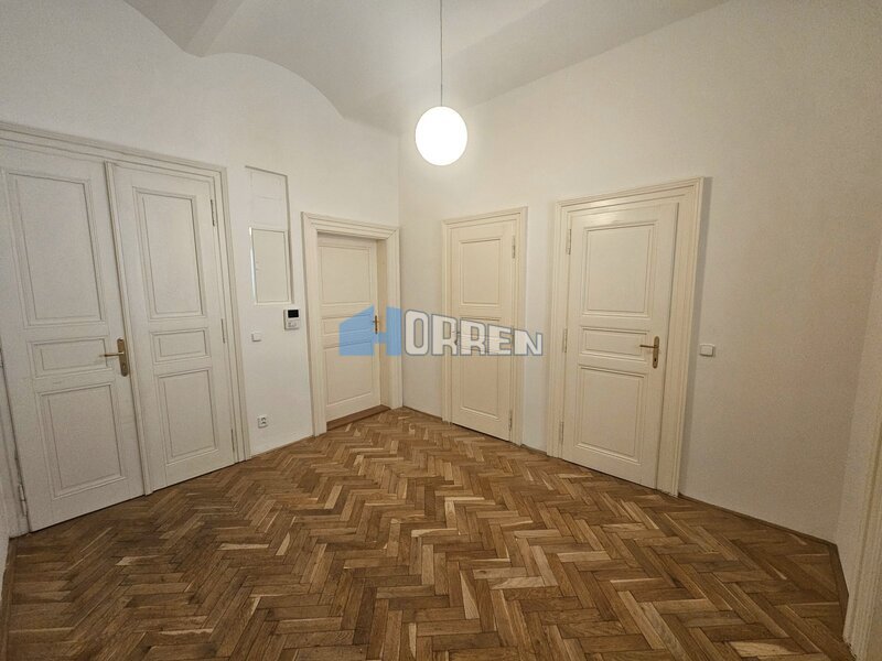 Nabízíme k dlouhodobému pronájmu světlý byt 3+kk umístěný ve 4.patře cihlového domu v ulici Jungmannova, sousedícím s divadlem Kalich. Dům z roku 1894 má renovované historické společné vnitřní prostory a prvky a nově přistavěný skleněný výtah v dvorním traktu. Byt je po rekonstrukci v roce 2014, vlysové dubové parkety pokrývají většinu jednotky a moderní dlažba doplňuje prostornou koupelnu a samostatnou toaletu. Koupelně dominuje samostatně prostorově umístěná vana, dále je zde praktický sprchový kout, toaleta, bidet a pračka jsou samozřejmostí. Velký obývací pokoj s orientací k jihu zaručuje dostatek slunce po velkou část dne. V pokoji je umístěna kuchyňská linka ve tvaru U, která je plně vybavena vestavěnými spotřebiči Bosch (myčka, trouba ,kombi lednice apod.) a praktickou skříní na potraviny. Vedle obývacího pokoje je jedna ložnice a na opačném konci bytu je druhá ložnice s vestavěnou velkou šatnou. Vysoké stropy jen dále umocňují pocit velikosti a volnosti. Vytápění zajištuje kombi plynový kotel. K bytu přísluší sklep v suterénu domu. Zastávky tramvaje a metra (A,B) jsou max. do 5 min. chůze, metro „C“ o kousek dále. Vzhledem ke svému umístění jsou téměř na dosah všechny vymoženosti centra. Majitel nechce spolubydlení. Prohlídky po domluvě